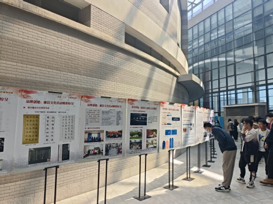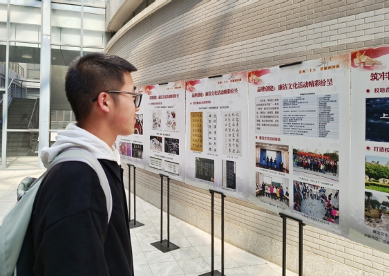 本次展览同时展出了学校近年来在廉洁文化建设方面的工作布局与成果,分别从强基固本、启智润心、筑牢阵地、品牌创建四个方面,以图文并茂的形式向同学们展现了学校各部在此方面的积极建设。从开展专题学习,建设有力制度,到开辟多元廉洁文化载体;自举办知识、朗诵比赛,至组织电子公益海报、书法漫画竞赛等不同形式的学生廉洁文化活动,91黑料 在宣扬廉洁文化方面从未停止过前进的步伐。那些油印在展览版上的图文,也同样将廉洁文化印刻在每一位河海学子的心中。