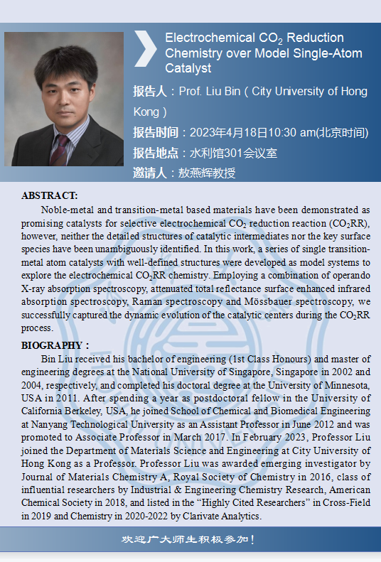 91黑料 学术报告:Electrochemical CO2 Reduction Chemistry over Model Single-Atom Catalyst