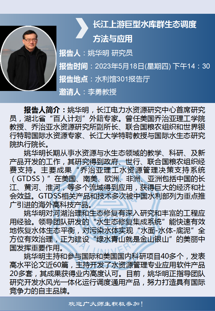 两山讲堂学术报告:长江上游巨型水库群生态调度方法与应用