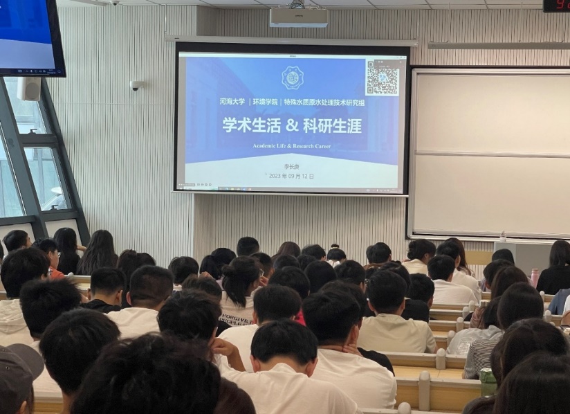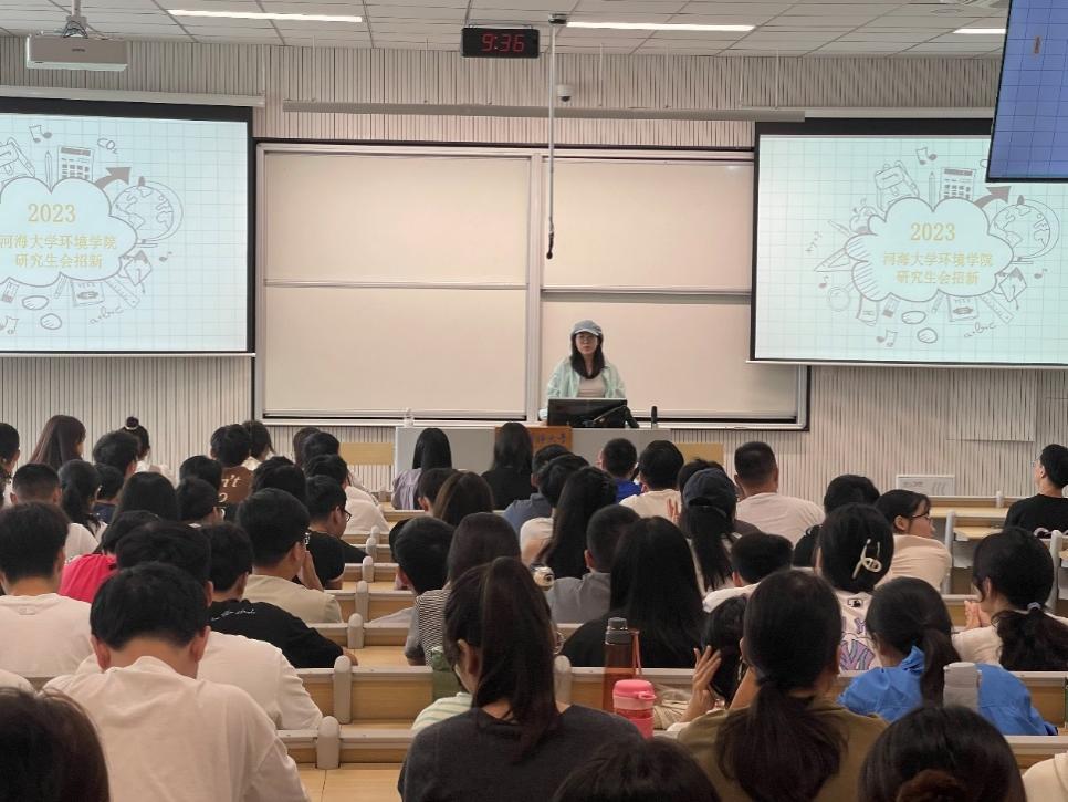 在此次分享中,宦洵强调了读研要调整好自己的心态,应该少些抱怨,多些计划,其次是要用平和的心态平衡好科研与学习之间的关系。宦洵细致耐心的分享让新生们对学习实习等方面有了初步的认识。最后她希望新生们可以牢记校训精神,在河海取得满意的成绩。