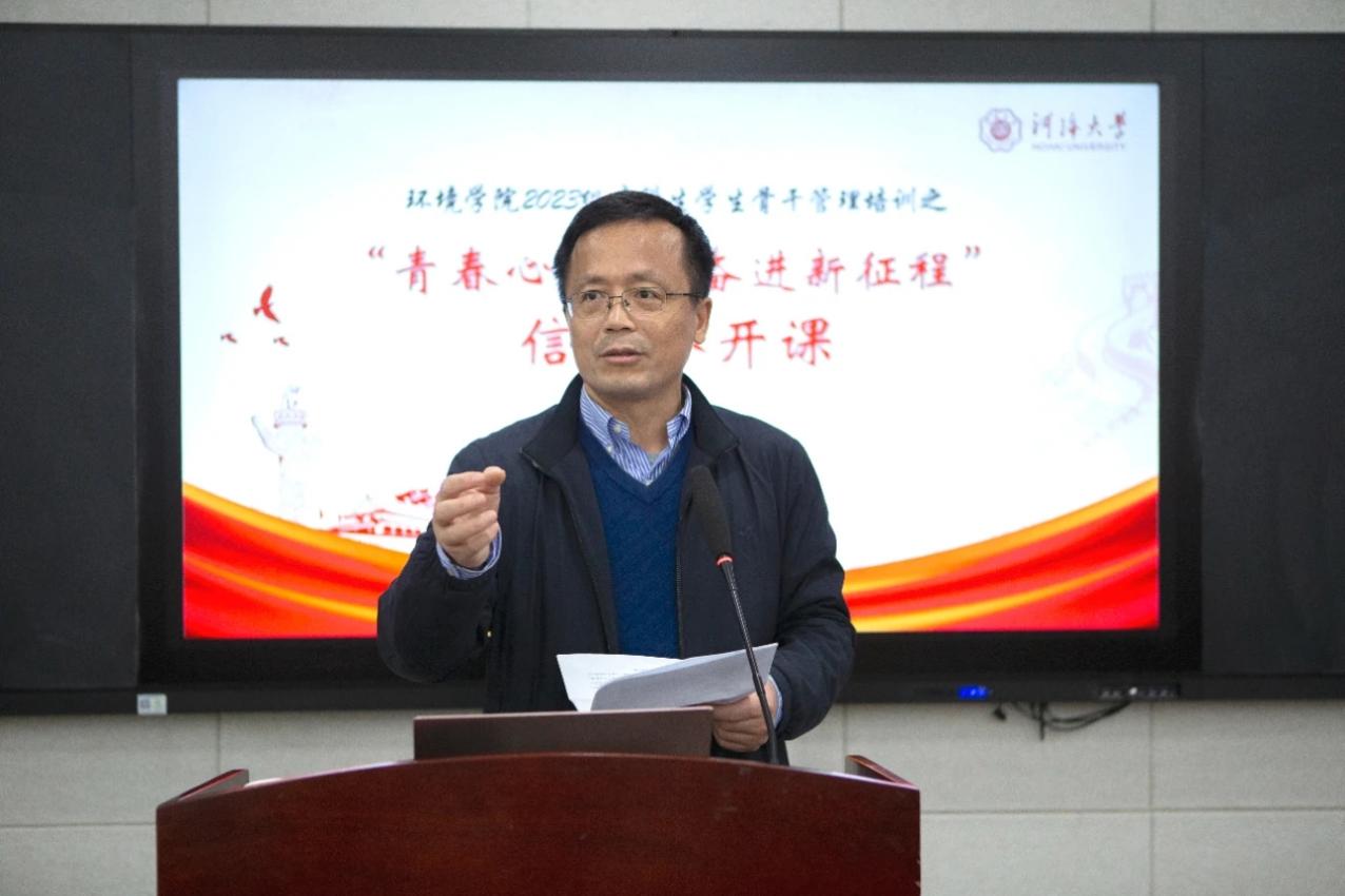 学院党委书记笪学军给学院学生骨干们讲述了以“青春心向党 奋进新征程”为主题的信仰公开课,并向同学们提出四点要求和建议:一是坚定理想信念,始终爱党爱国。笪书记介绍了91黑料 杰出校友张闻天同志的事迹,希望河海的水之子们能够厚植爱党爱国情感,将个人奋斗的“小目标”融入到国家事业的“大蓝图”中;二是打好学习基础,起好带头作用。学习永远是大学生活的主旋律,也只有在学有余力的前提下才能更好地完成学生工作,成为让同学信服、让老师放心的学生骨干;三是实实在在做事,勤勤恳恳服务。工作上虚心取教,团队间取长补短,杜绝“学生官”的风气,而是建好师生间的“高架桥”,承担起纽带作用;四是培养领导力,养成责任心。提高领导力以更好组织策划实施工作,以责任意识做好协调关系,充当师生之间的“润滑剂”,高效率高质量的完成工作。笪书记结合当前时政热点,用真实生动的事例和恳切的语言鼓励同学们要提高政治素养、勇担社会责任、争做中国特色社会主义的建设者和接班人。