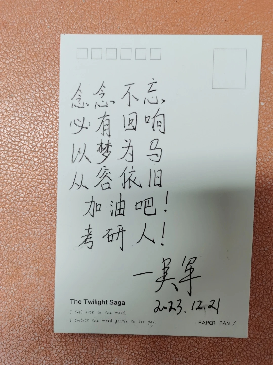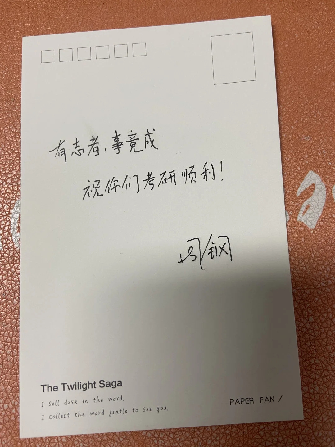 “半师半友半知己,半慕半尊半倾心”,班导师为考研学子送上祝福贺卡,鼓励考研学子稳住心态、奋斗到底、勇夺佳绩。