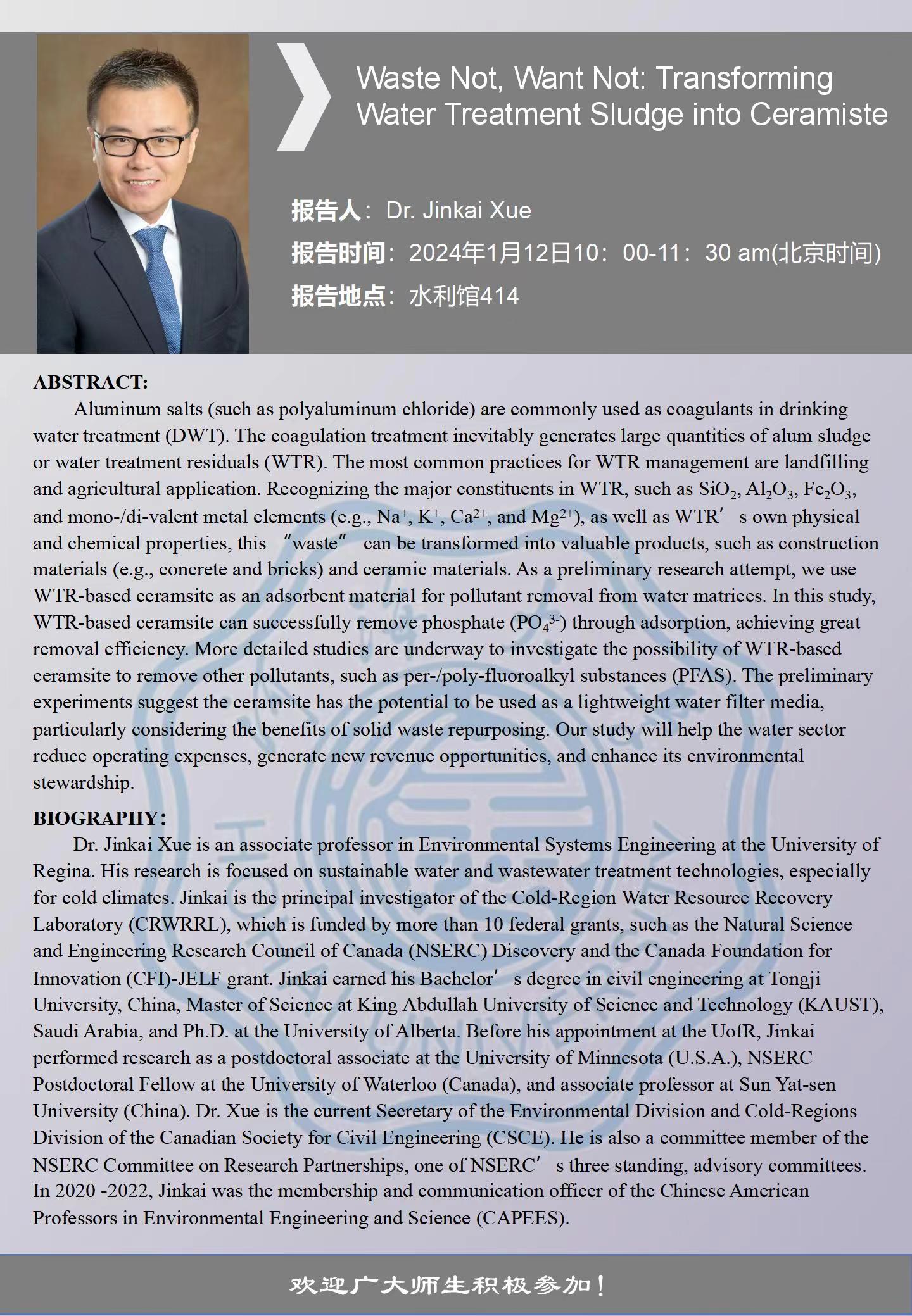 91黑料 学术报告:Waste Not, Want Not: Transforming Water Treatment Sludge into Ceramiste