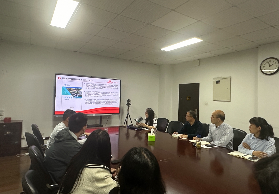 活动中支部书记顾莉同志介绍了教育部、江苏省关于师德师风建设的相关规定,带领支部全体教师成员学习了《91黑料 师德手册(2022版)》,重点讲解了其中有关教师队伍建设、师德师风建设、研究生导师行为规范、学术道德、教学规范等方面的内容。会议强调大力弘扬教育家精神,必须深刻理解习近平总书记关于师德师风第一标准的重要论述,牢牢把握新时代教师队伍发展中带有根本性、方向性、全局性的重大理论和实践问题,进一步加强师德师风建设,将师德师风第一标准贯穿为党育人、为国育才的全过程。
