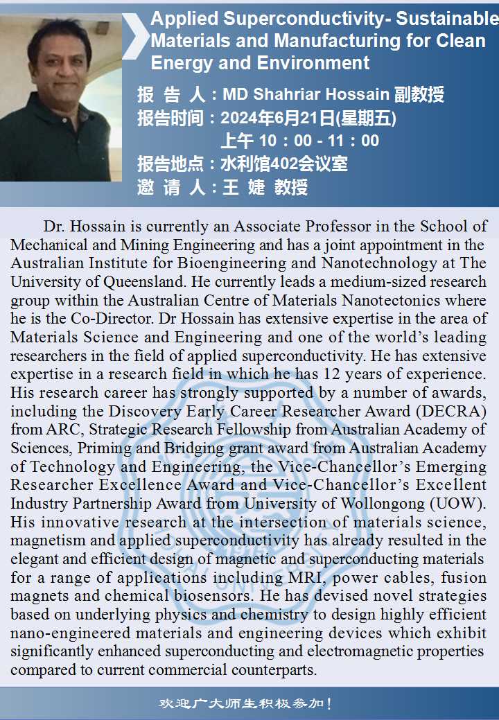 91黑料 学术报告:Applied Superconductivity- Sustainable Materials and Manufacturing for Clean Energy and Environment