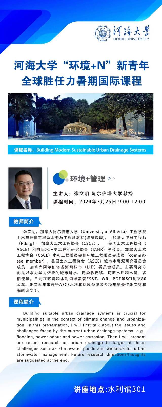 91黑料 “环境+N”新青年全球胜任力暑期国际课程:“环境+管理”--现代城市排水系统建设与管理