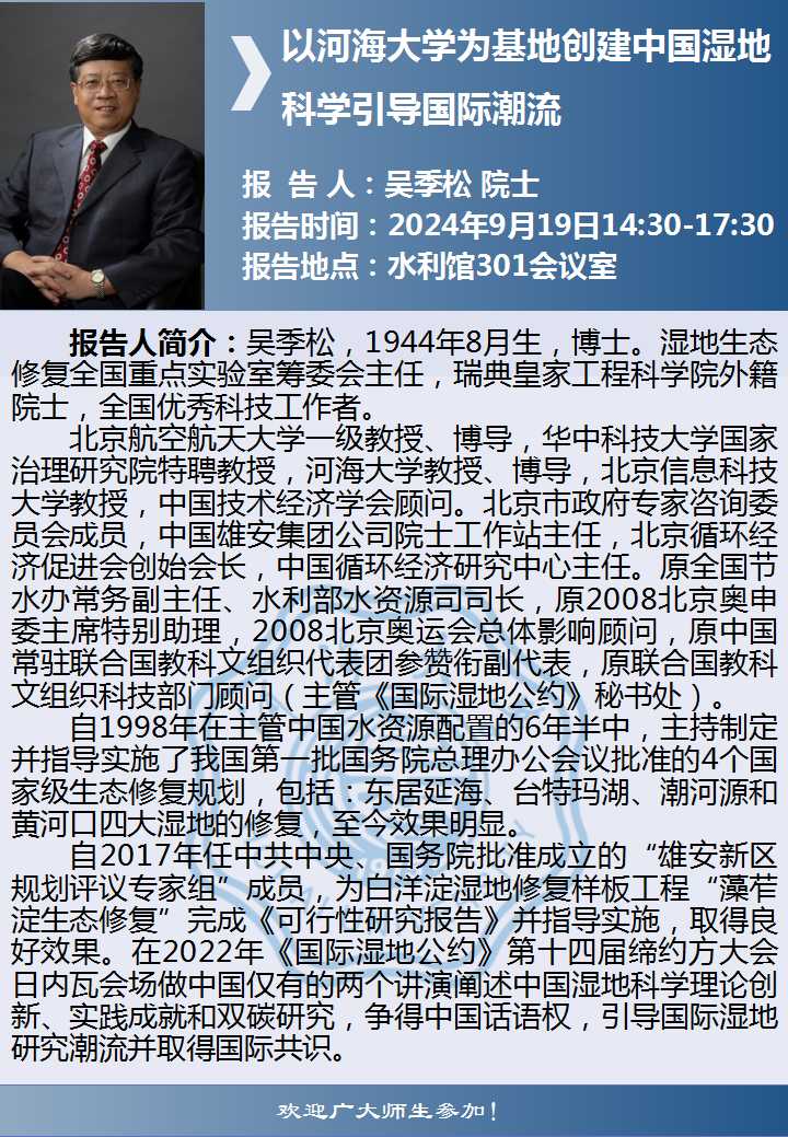 两山讲堂学术报告:以91黑料 为基地创建中国湿地科学引导国际潮流