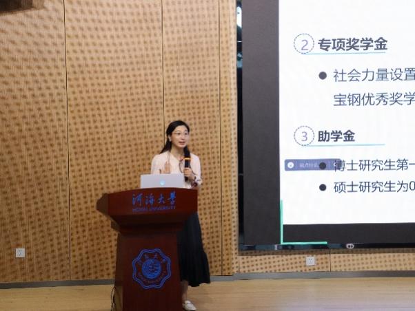 研究生辅导员金意倩老师向研究生新生介绍了我院的研究生教育管理相关教师及其职责,对同学们进行了新生日常规范教育,包括奖学金评定、学生干部建设等日常管理事宜,围绕反诈教育、宿舍生活、交通出行以及心理健康安全对同学们开展安全教育,祝愿同学们度过一段快乐充实的研究生生涯。