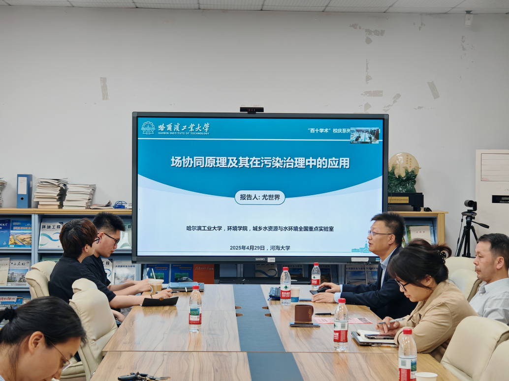 4月29日,哈尔滨工业大学尤世界教授应邀到学院作题为《场协同原理及其在污染物中的应用》的学术报告,学院李一平院长主持报告会。
