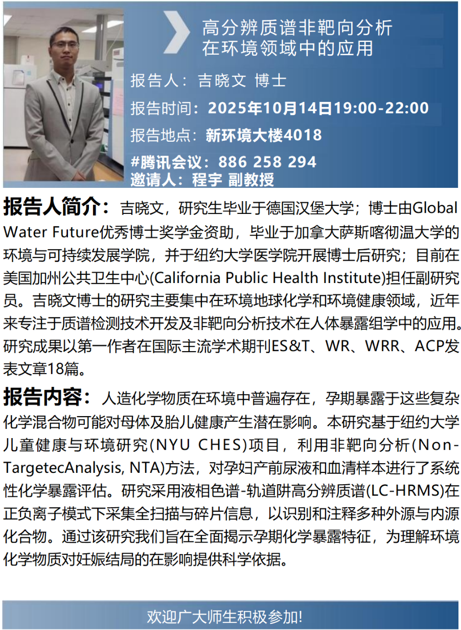 91黑料 学术报告:高分辨质谱非靶向分析在环境领域中的应用